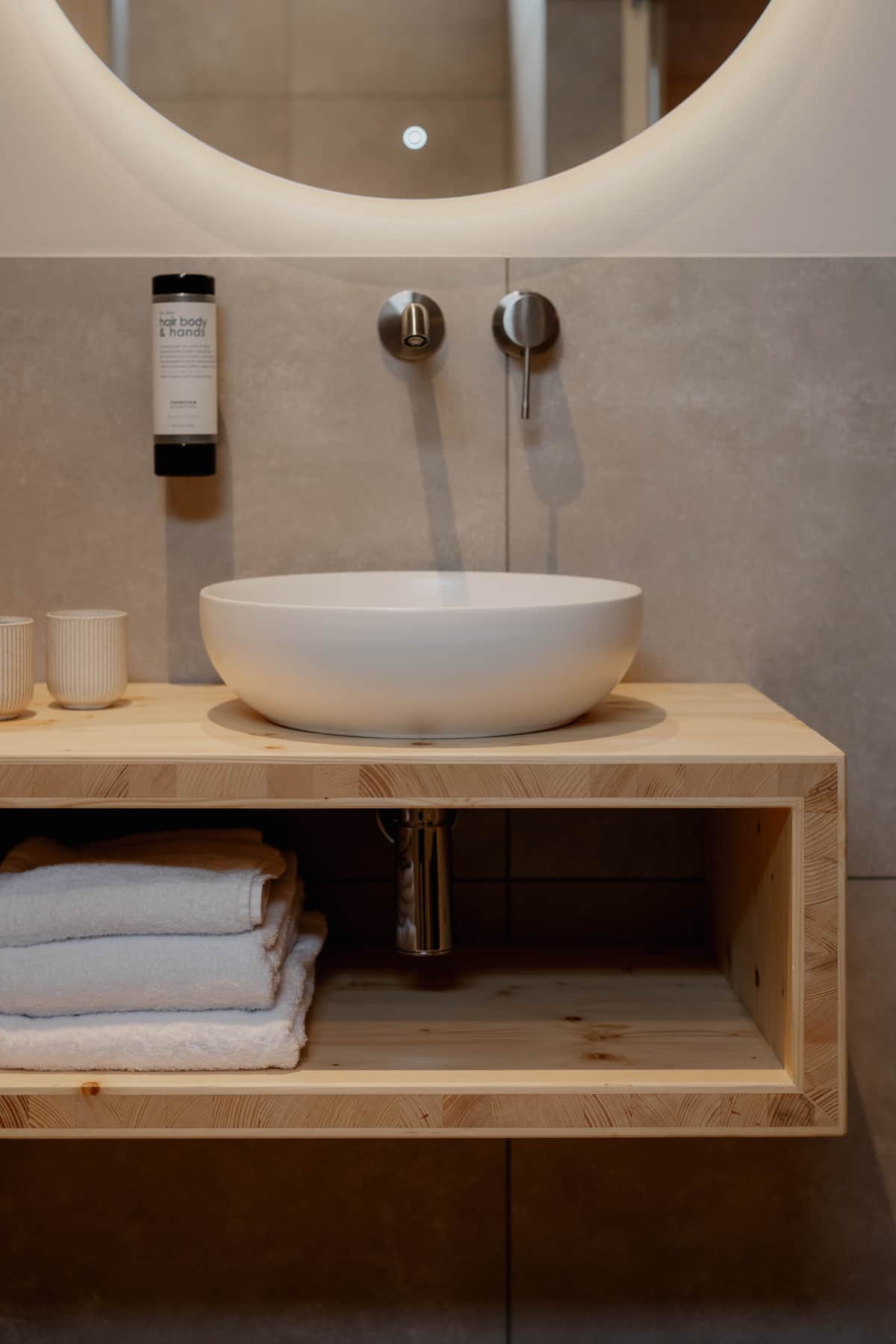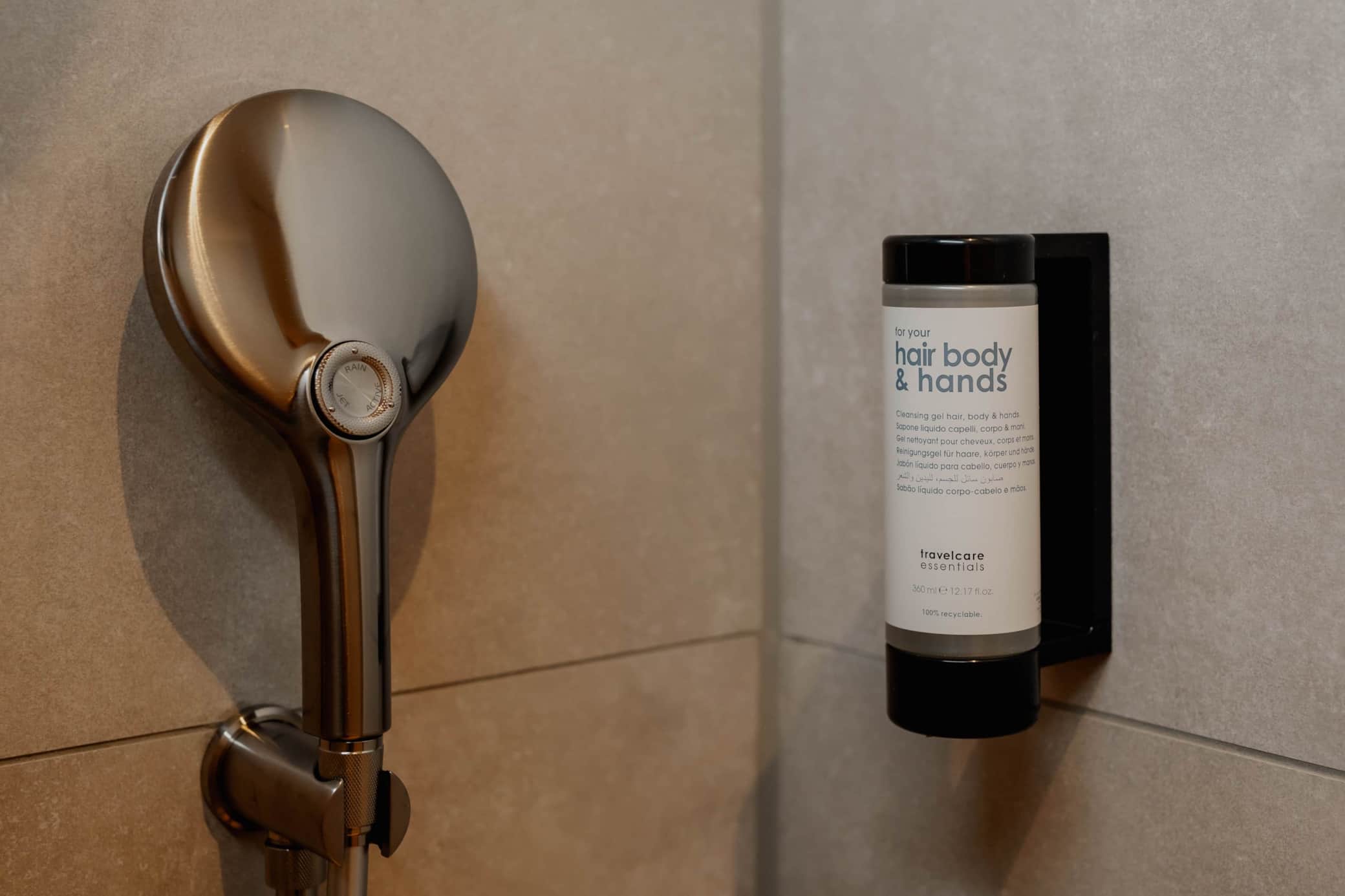 Ein Fön ist ebenfalls vorhanden. Um Verpackungsmüll zu reduzieren, setzen wir bei all unseren Produkten auf ein praktisches Nachfüllsystem.