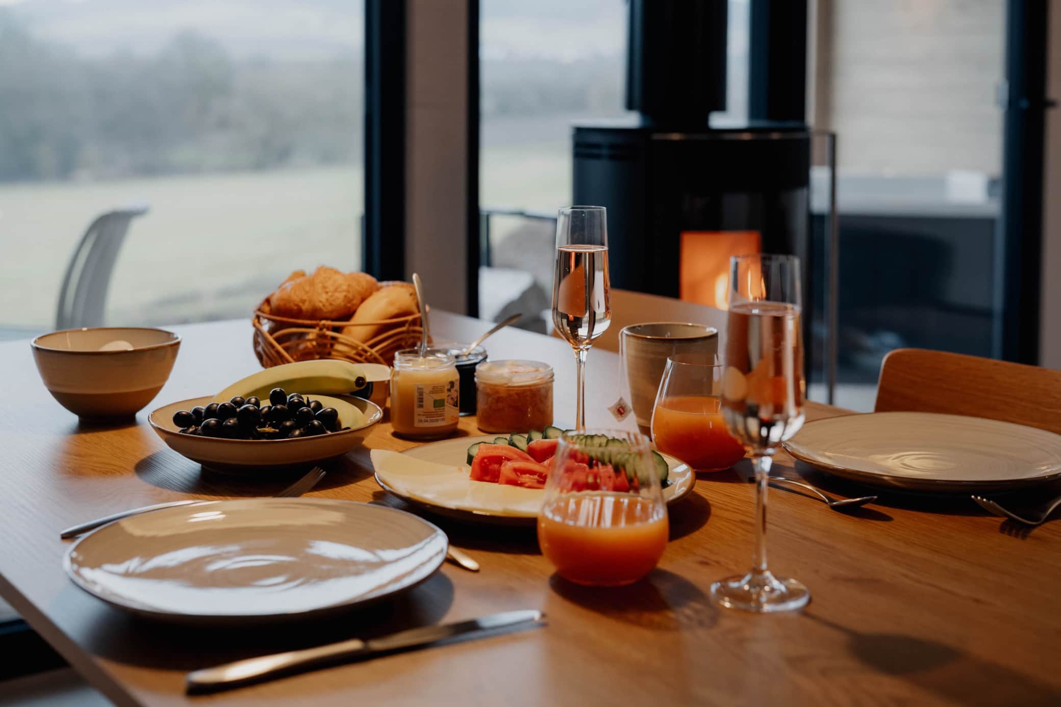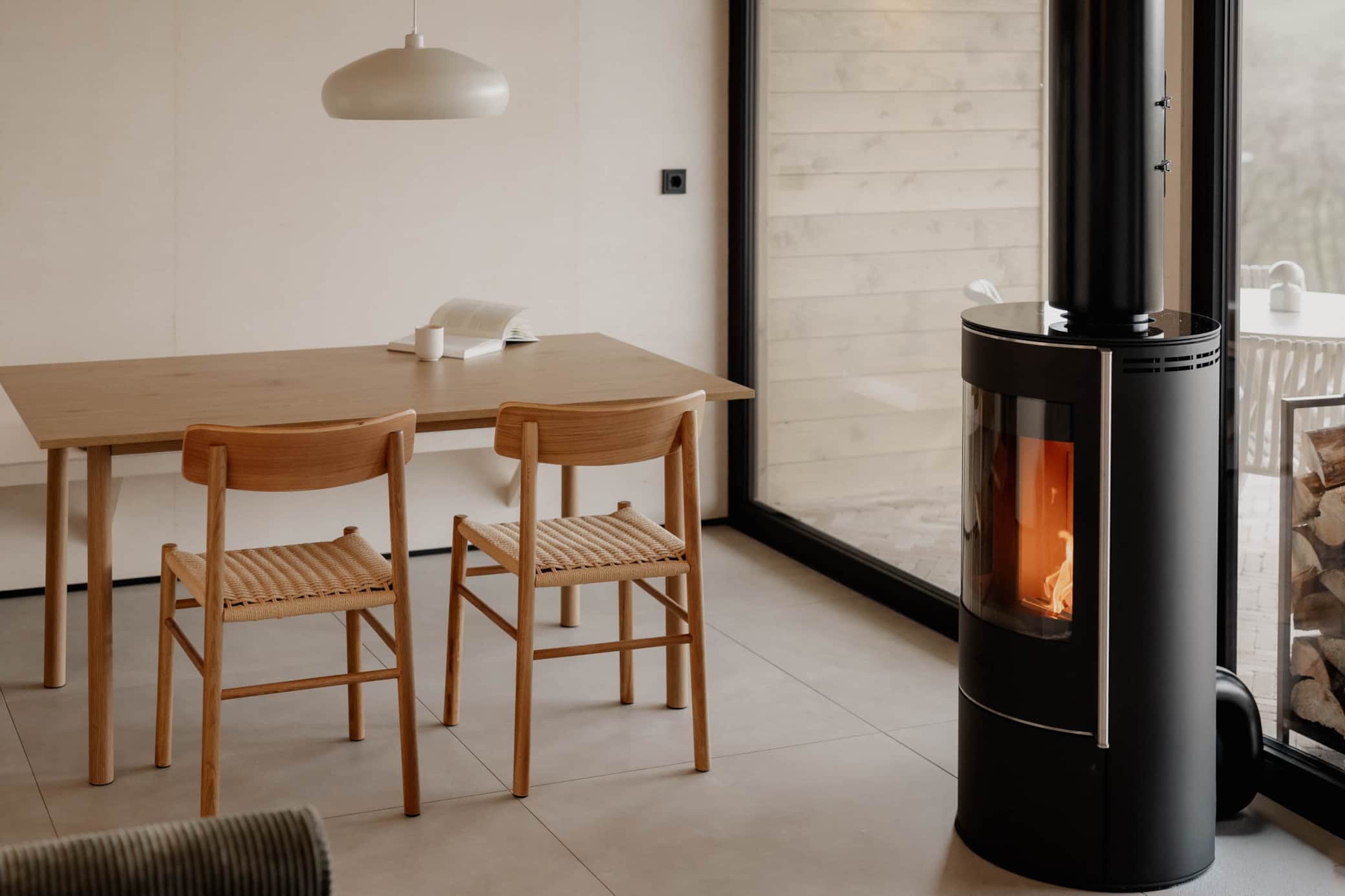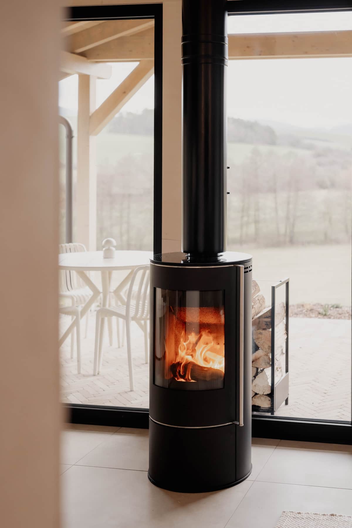 Jedes Chalet verfügt über einen eigenen Kamin, der an kühlen Abenden für eine besonders gemütliche Atmosphäre sorgt. Das knisternde Feuer taucht den Wohnraum in warmes Licht und schafft den perfekten Rahmen für entspannte Stunden nach einem Tag in der Natur. Auf der Terrasse steht jederzeit ausreichend Kaminholz bereit, sodass dem stimmungsvollen Feuererlebnis nichts im Wege steht.